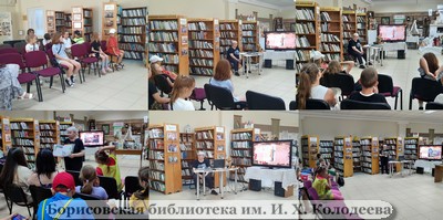 Библиотеарь-кравед Алла Смирнова с помощью электронной презентации “Сороковые, роковые, военные и пороховые…” рассказала ребятам о начале Великой Отечественной войны 1941-1945 гг., которая была самым страшным испытанием в истории нашей Родины. Познакомила с информацией о том, как сухопутные войска фашистской Германии перешли нашу границу, а немецкая авиация бомбила не только военные объекты, но и мирные города, рассказала о выступлении наркома инсотранных дел СССР Вячеслава Молотова, который по радио объявил народу о вероломном нападении Германии на Советский Союз. Дети узнали, что миллионы советских людей отправились в военкоматы, стремясь попасть на фронт, чтобы защищать Родину с оружием в руках. Большое внимание библиотекарь уделила рассказу о героической обороне Брестской крепости, Смоленском сражении, обороне Киева, Одессы, Севастополя, Ленинградской битве, битве за Москву, обороне городов Беларуси Могилева и Борисова, рассказала о подвиге курсантов Борисовского танкового училища и воинов 1-ой Московской мотострелковой дивизии.