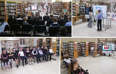 Библиотекарь Анна Москалева с помощью электронной презентации «Такие разные библиотеки» познакомила ребят с историей развития библиотек: от появления в I тыс. до н. э. библиотеки в городе Ниппур до современных он-лайн библиотек. Также ребята узнали о необычных библиотеках мира.