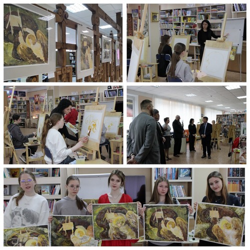 В рамках торжественных мероприятий, посвященных презентации выставки современного искусства «Палитра вдохновения» в ГУК «Борисовская центральная районная библиотека им. И.Х. Колодеева», 6 февраля для учащихся ГУО «Детская художественная школа искусств имени А.А. Аникейчика г. Борисова» был организован мастер-класс от преподавателя УО «Минский государственный колледж имени А.К. Глебова» Виктории Григорьевны Андрюшиной.