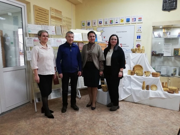 Библиотекарь читального зала Галина Ярош познакомила школьников с книжно-иллюстративной выставкой «Деревообработка: искусство, технологии, традиции», которая будет сопровождать все встречи проекта.