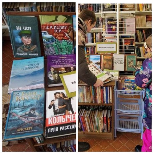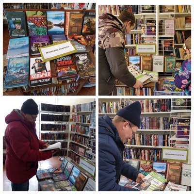 Внимание мужчин привлекли книги для повышения навыков по строительству, ремонту, об устройстве автомобиля, а в книгах об охоте и рыбалке рассказаны секреты богатого улова и успешной охоты: С. Никольский «Ремонт квартиры своими руками», Ю. Симионов «Справочник мастера-строителя», С.Сидоров «Рыбалка. 4 времени года», «Пчелы, мед, пасека: опыт пчеловодов». Из художественной литературы заинтересовали книги из серии «S.T.A.L.K.E.R» и «Военные приключения»: С. Недоруб «Признаки жизни», Г. Ананьев «Зов чести» а также А. Бушков «Степной ужас», К. Касслер «Айсберг», Г. Вайнер «Дивизион», В. Колычев «Пуля рассудит», А Воронин «Слепой. Исполнение приговора», В. Фатеев «Город в законе», Н. Чергинец «Операция «Кровь», С. Кулаков «Две любви Саныча», С. Климкович «Жили-были…», В. Фатеев «Город в законе», О. Ревуцкий «Легкая торпеда», В. Высоцкий «Стихи. Проза», Ш. Пенман «Королевский выбор». Представлен цикл книг А. Бернацкого «Удивительное и невероятное в судьбах». Читатели с удовольствием ознакомились с журналом «Хозяин». Мужчины получили подарки c пожеланиями добра и благополучия!