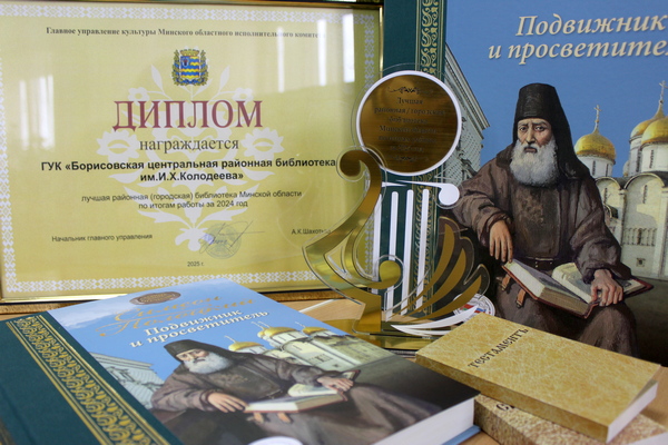 Во Дворце культуры Молодечно лучшим работникам сферы культуры вручили награды. Приятно отметить, что ГУК «Борисовская центральная районная библиотека им. И.Х. Колодеева» признана лучшей районной библиотекой Минской области по итогам работы за 2024 год. Елене Копыток вручены диплом Главного управления культуры Миноблисполкома, памятный знак, а также сувенирные издания Постоянного Комитета Союзного государства – большой том «Симеон Полоцкий. Подвижник и просветитель», книги малого формата «Тестаментъ» и «Букварь языка словенска».