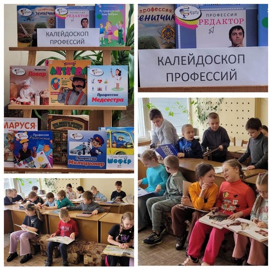 Во время встречи дети с большим интересом играли в игры «Доскажи словечко», «Загадки-обманки», «Угадай профессию». Школьники принимали активное участие в слайд-беседе «Детям о профессиях», отвечали на вопросы. В завершение мероприятия школьники познакомились с книжной выставкой «Калейдоскоп профессий» и самостоятельно читали понравившиеся детские книги и журналы.