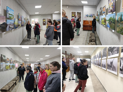 Молодые люди познакомились с творчеством борисовчанки Татьяны Сергиенко и ее учениц, участников художественного кружка «Ракурс» ГУ «Территориальный центр социального обслуживания населения Борисовского района» Людмилы Амосовой и Натальи Ивановой. На живописных произведениях художников-любителей ребята узнавали живописные места родного города: мост через Березину, проспект Революции, железнодорожный вокзал и многое другое. наших посетителей впечатлили натюрморты с дарами сада и огорода, творческие композиции на тему праздников. Экскурсия сопровождалась рассказами ребят о семейных традициях и путешествиях по увиденным на работах местам.