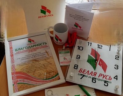 Приятно отметить: за системную результативную работу по реализации Уставных и Программных положений Республиканского общественного объединения «Белая Русь», активное участие в проектной деятельности объединения, умелый поиск скрепов единения нашего общества и поддержку курса на строительство сильной и независимой Беларуси Благодарностью и ценными подарками Совета Борисовской районной организации Республиканского общественного объединения «Белая Русь» удостоена первичная организация Борисовской РО РОО «Белая Русь» библиотеки Колодеева. Награда была вручена руководителю нашего учреждения культуры Елене Копыток Кроме того, Елена Сергеевна выбрана в состав Совета Борисовской районной организации РОО «Белая Русь».