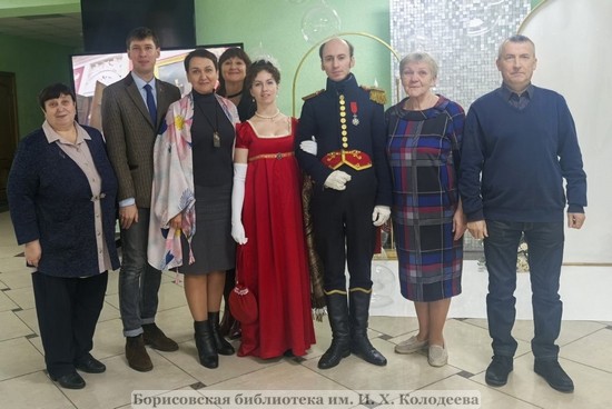 Первым из почетных гостей выступил кандидат исторических наук, доцент кафедры Белорусского государственного педагогического университета им. Максима Танка Игорь Груцо, который привел малоизвестные факты о деревне Студёнка в 1812 году. Особый интерес вызвал рассказ о движении военно-исторической реконструкции научного сотрудника Института истории НАН Беларуси, руководителя клуба «Фузилеры Императорской гвардии» Дмитрия Ракова, обмундированного в реконструированный французский военный мундир эпохи Наполеоновских войн. Коллега Дмитрия по увлечению Ксения Потеенко, облаченная в женский наряд начала XIX века, рассказала об элементах костюма и бальной культуре тех времен. Информативную летопись Колодеевских чтений, проводимых библиотекой с 2009 года, представил сотрудник библиотеки Колодеева Александр Балябин. Докладчик акцентировал внимание на выступлениях, прозвучавших в ходе IX Международной научно-практической конференции «Колодеевские чтения» 20 ноября этого года, где, в частности, прозвучали доклады преподавателя истории БГК Людмилы Гавриш и учащейся колледжа Александры Палатовой. Выпускник колледжа, а ныне директор Борисовского объединенного музея Павел Хацкевич призвал молодежную аудиторию изучать историю родного края и помнить о героическо-трагических событиях, произошедших на реке Березине в 1812 году.