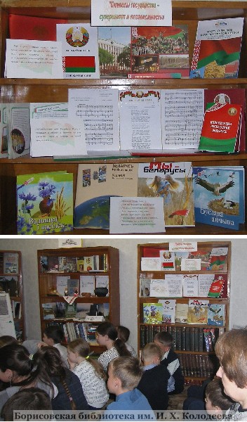 13 мая в городской специализированной библиотеке № 5 для ребят ГУДО «Центра творчества детей и молодежи Борисовского района» прошёл исторический экскурс «Герб, гимн, флаг – символы нашей независимости». Ребята познакомились с историей возникновения символов нашего государства – гербом, флагом, гимном. Прослушали гимн, определили значение эмблем, изображенных на гербе и флаге, а также значение их цветов, узнали о роли и значении символики в жизни каждого человека и страны в целом.