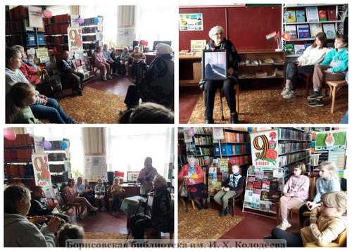 6 мая в городской специализированной библиотеке № 5 для детей ГУДО «Центра творчества детей и молодежи Борисовского района» прошла встреча-воспоминание с малолетней узницей Е.И. Барановской «Я родом из военного детства…», посвященная Победе советского народа в Великой Отечественной войне. Елена Ивановна, чудом оставшаяся в живых, поделилась с подрастающим поколением своими воспоминаниями о своем «украденном» детстве, о страшных событиях военного лихолетья: голод, болезни, мучения, рассказала и о радостных моментах освобождения. От библиотекаря и участников мероприятия в ее адрес прозвучали теплые слова с пожеланиями здоровья и долголетия и вручены памятные сувениры и цветы. Главная мысль мероприятия состояла в том, что, только сохраняя память о тех страшных событиях можно надеяться на то, что подобное больше никогда не повторится в истории человечества.