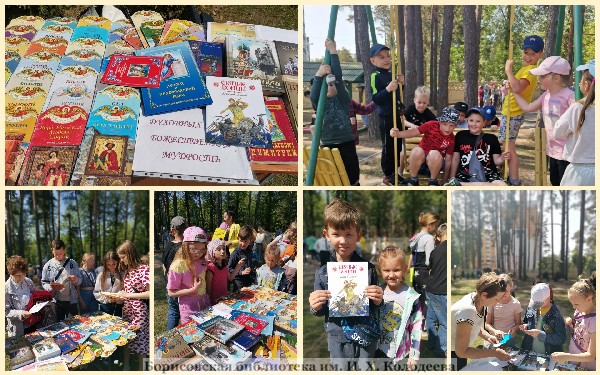 1 июня, во Всемирный день защиты детей, сотрудники духовно-просветительского центра библиотеки Колодеева приняли участие в праздновании престольного праздника в борисовском храме святого благоверного Димитрия Донского. На детской площадке была организована книжная выставка “Духовных книг божественная мудрость”, на которой представили литературу из фонда духовно-просветительского центра по истории Православия на Борисовщине, а также подборка книг из серии «Твое святое имя». Ребята и их родители познакомились с познавательными книжными экспонатами, получили массу положительных эмоций от изучения духовных книг, красиво оформленных яркими иллюстрациями.