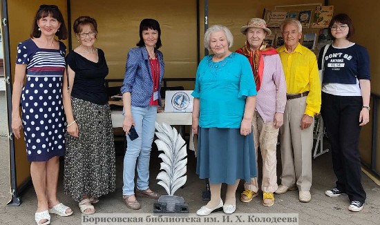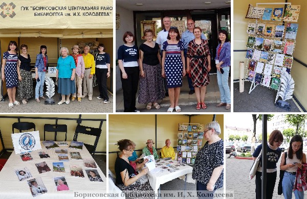 Участники литературного объединения «Натхненне» Борисовской центральной районной библиотеки им. И.Х. Колодеева работали на интерактивной площадке «Библиотека под открытым небом» – в палатке у входа в центральную библиотеку представляли для горожан и гостей региона «Библиотечку «Натхнення».
