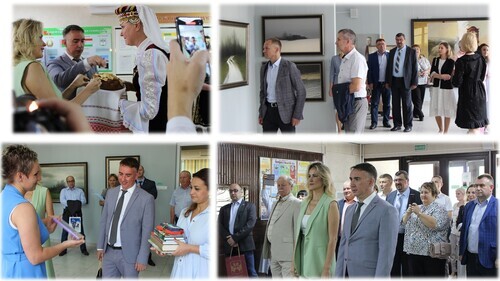 Российские гости познакомились с выставочными площадками и музейными экспозициями центральной библиотеки. Например, в картинной галерее признанного мастера пейзажа Валерия Шкарубо они искренне восхитились полотнами нашего земляка, олицетворяющими гимн белорусской природе. В пространстве галереи заместитель директора библиотеки Светлана Щербо вручила директору покровского Дома культуры Камилле Рустамовне Лазаревой комплект книг о Борисове.