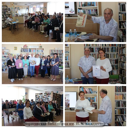 19 сентября в центральной библиотеке прошла встреча с членом Совета Национально-культурной автономии «Белорусы Москвы» Владимиром Куликом. Он посетил нашу страну (город Борисов, в частности) в составе делегации белорусов России. В мероприятии участвовали сотрудники отделов центральной библиотеки и участники литературного объединения «Натхненне». Представила гостя директор библиотеки Елена Копыток, отметив, что Владимир Кулик не только активно занимается литературной деятельностью, что очень важно для нашего учреждения культуры, но и является практикующим врачом-неврологом. Владимир Николаевич сначала немного рассказал о себе (а он родился и вырос на Случчине). Затем приступил к повествованию о деятельности НКА «Белорусы Москвы». В процессе выступающий использовал презентацию, которую подготовил заранее. Владимир Кулик презентовал участникам встречи книги, опубликованные НКА «Белорусы Москвы» в 2022 году. Все они вышли в «Издательские решения по лицензии Ridero». В их создании, несомненно, участвовал и Владимир Кулик. Он рассказал о «Беларускія народныя песні», которая адресована широкому кругу любителей белорусской культуры и народных песен, исполнителям и самодеятельным коллективам. В книге размещены тексты с нотами 101 песни. В первом выпуске альманаха «Белорусский дневник – 2022» собраны очерки, рассказы, стихи, воспоминания участников НКА «Белорусы Москвы», а также произведения других авторов, связанные с интересными моментами в жизни, с родной Беларусью. Третья – «Памятные места в Москве, связанные с белорусами» – описывает 24 места в Москве, которые хранят память о белорусах, внёсших значительный вклад в её историю и облик. Владимир Кулик подарил эти книги библиотеке Колодеева. Также он вручил ещё три солидных тома, выпущенных НКА «Белорусы Москвы» в 2020-м. В их числе – «Планета СССР: прерванный полет. Очерки неравнодушного человека» автора Николая Чехлова, сборник статей и воспоминаний «Пётр Машеров. Сын белорусского народа. Продолжение эпохи» и научное издание «Республика-партизанка. К 75-летию Победы в Великой Отечественной войне». Кроме того, директору библиотеки Колодеева Елене Копыток вручена Благодарность председателя НКА «Белорусы Москвы» Аллы Тужилкиной. В свою очередь, Елена Сергеевна подарила московскому представителю Национально-культурной автономии книги о Борисовщине, поэтические сборники разных лет. От литературного объединения «Натхненне» Владимир Кулик получил в дар коллективный сборник поэзии 2022 года «Мчатся мысли навстречу утру…» и авторское издание Е. Брицкой «Бэзавых думак ніткі». Встреча завершилась совместным фото её участников и договорённостью о дальнейшем сотрудничестве.
