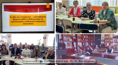 Серию выступлений открыли борисовчане: о работе клубов по интересам с помощью электронных презентаций рассказали специалисты абонемента, детского отдела и общего читального зала. В выступлении «Старшее поколение выбирает общение» библиотекарь абонемента Людмила Ракицкая поделилась опытом работы клуба для пожилых людей «Золотой возраст». Клуб действует уже 19 лет, отличаясь возрастными особенностями участников, их энтузиазмом и активной жизненной позицией. Людмила подробно говорила о направлениях и формах работы, затронула многочисленные темы мероприятий, мастер-классов, творческих встреч и познавательных экскурсов. О деятельности «Золотого возраста», как отметила Людмила Владимировна, не раз писали журналисты местных СМИ, чем клубовцы гордятся. Следующей слово взяла заведующий детским отделом Мария Около-Кулак. В её информативном выступлении говорилось о деятельности клуба молодой семьи «Домашний очаг». Мария Игоревна также обратила внимание на формы работы, цели и задачи клуба, атрибутику и т.д. Наиболее яркие моменты клубовских встреч нашли отражение в фотографиях. Выступление Марии Около-Кулак продолжила библиотекарь-краевед детского отдела Алла Смирнова. Она говорила о деятельности краеведческого кружка «Юные знатоки Борисова», программа которого рассчитана на учащихся начальной школы. Алла Анатольевна обратила внимание на то, что кружковая работа позволяет решать ряд познавательных задач, способствует развитию у учащихся любви к стране, своей земле, родному дому, семье. Разъяснив все основные положения по работе краеведческого кружка, Алла Смирнова подробно рассказала о ряде встреч и подведённых итогах мероприятий. Серию выступлений завершили участники литературного объединения «Натхненне». Руководитель литобъединения Елена Брицкая акцентировала внимание вологодских коллег на основных моментах работы «Натхнення», на издании коллективных и личных сборников авторов. Поэты Вячеслав Полубинский, Мария Около-Кулак, Сергей Лукашик, Клавдия Петрушенко почитали свои стихи. Когда слово перешло к сотрудникам Вологодской областной универсальной научной библиотеки им. И.В. Бабушкина, по ту сторону экрана прозвучали четыре насыщенные полезной информацией выступления. Большой интерес у борисовчан вызвала деятельность литературного клуба «Общество борьбы SOSкукой» («Общество борьбы со скукой») для взрослых читателей. Не менее увлекательно прозвучало выступление о работе клуба любителей детского чтения «Читающая лошадка» (для детей 6-10 лет). Подытожили своё выступление вологодчане сообщением об активной деятельности молодёжных клубов: «Молодёжный читательский совет», «Школа универсальных навыков», «Читающий клуб «Классики». Елена БРИЦКАЯ