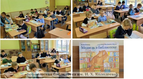 Для школьников было проведено громкое чтение книги Бонни Беккер «Медведь в библиотеке». Дети с удовольствием послушали сказку, а позже самостоятельно читали красочные детские журналы.