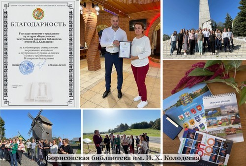 ГУК «Борисовская центральная районная библиотека им. И.Х. Колодеева» удостоена Благодарности Министерства спорта и туризма Республики Беларусь – за плодотворную деятельность по развитию въездного и внутреннего туризма, а также в связи с празднованием Всемирного Дня туризма.