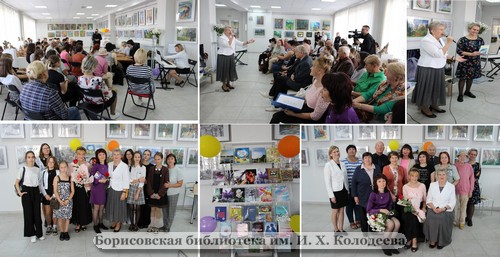 В конце сентября в галерее «З’ява» Борисовской центральной районной библиотеки им. И.Х. Колодеева состоялась презентация новых книг участников литературного объединения «Натхненне» – «Бэзавых думак ніткі» Елены Брицкой и «Рисую счастье» Клавдии Петрушенко. Потому презентация и называлась «Новые строки поэзии». Белорусскоязычный сборник поэзии Елены Брицкой вышел в издательстве «Национальная библиотека Беларуси» 31 июля, а русскоязычный Клавдии Петрушенко – в издательстве «Альфа-книга» 30 июня. Лето оказалось богатым на события. В числе зрителей на мероприятии присутствовали учащиеся филиала БНТУ «Борисовский государственный политехнический колледж» и старшеклассники гимназии №3 г. Борисова, их педагоги, сотрудники и читатели библиотеки. Музыкальные композиции зрителям дарили композитор и исполнитель из г. Фаниполь, участник Минского областного народного клуба поэтов и композиторов «Жывіца» Тамара Кащево, поэт и бард «Натхнення» Валентина Анкудинова, ученица Стараборисовской детской школы искусств Полина Шашкова, её педагог Елена Богданович и концертмейстер Елена Муштенко. Конечно же, на вечере звучали стихи из «новоиспечённых» сборников в исполнении авторов. Также они рассказали о задумках при создании и наполнении своих книг. Встречу украсили букеты цветов и книжная выставка из личных и коллективных изданий Елены и Клавдии. Кроме того, на ТВ-экране как слайд-шоу листались фотографии сотрудника отдела галерейно-выставочной деятельности Эллы Галько, которая выступила фотооформителем сборника «Бэзавых думак ніткі», и это был её удачный дебют. На вечер также приехали команды тележурналистов: республиканского «Беларусь1» и местного «СКИФ». Так что ждём ТВ-сюжеты. В целом, получилось тепло и по-домашнему. Елена БРИЦКАЯ