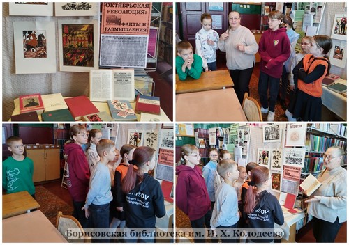 4 ноября для детей ГУДО «Центра творчества детей и молодежи Борисовского района» библиотекарь провела познавательную беседу у выставки, где подробно и доступно рассказала о событиях Октябрьской революции, её влиянии на общество и мировую историю. На выставке представлены книги и документы, где отражены события, ставшие поворотной точкой в истории страны. Ребята сделали вывод, что мы должны помнить уроки прошлого, чтобы предотвратить конфликты в настоящем.