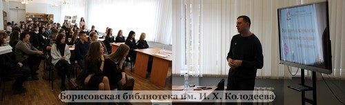 В рамках межведомственного информационно-просветительского проекта «Борисов. PROF-навигатор», который реализуется в Борисовской центральной районной библиотеке им. И.Х. Колодеева уже в течение трёх лет, 13 ноября в нашем учреждении культуры прошла ещё одна весьма полезная встреча.