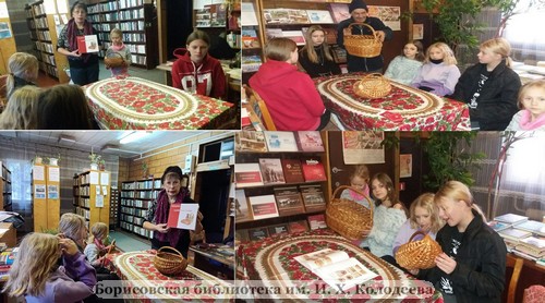 Библиотекарь Людмила Тупик представила собравшимся клуба книгу Е.В. Гурецкой «Лозоплетение». В издании в доступной форме рассказывается о том, как правильно выбрать и заготовить нужный материал, обработать его, освоить основные виды плетений и пошагово изготовить изделия из лозы. Затем местный умелец В.В. Лазерко познакомил участников мероприятия с технологией изготовления лукошка и корзинки.