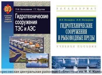 Отдел обслуживания и информации (читальный зал) предлагает книги по гидротехническим сооружениям.