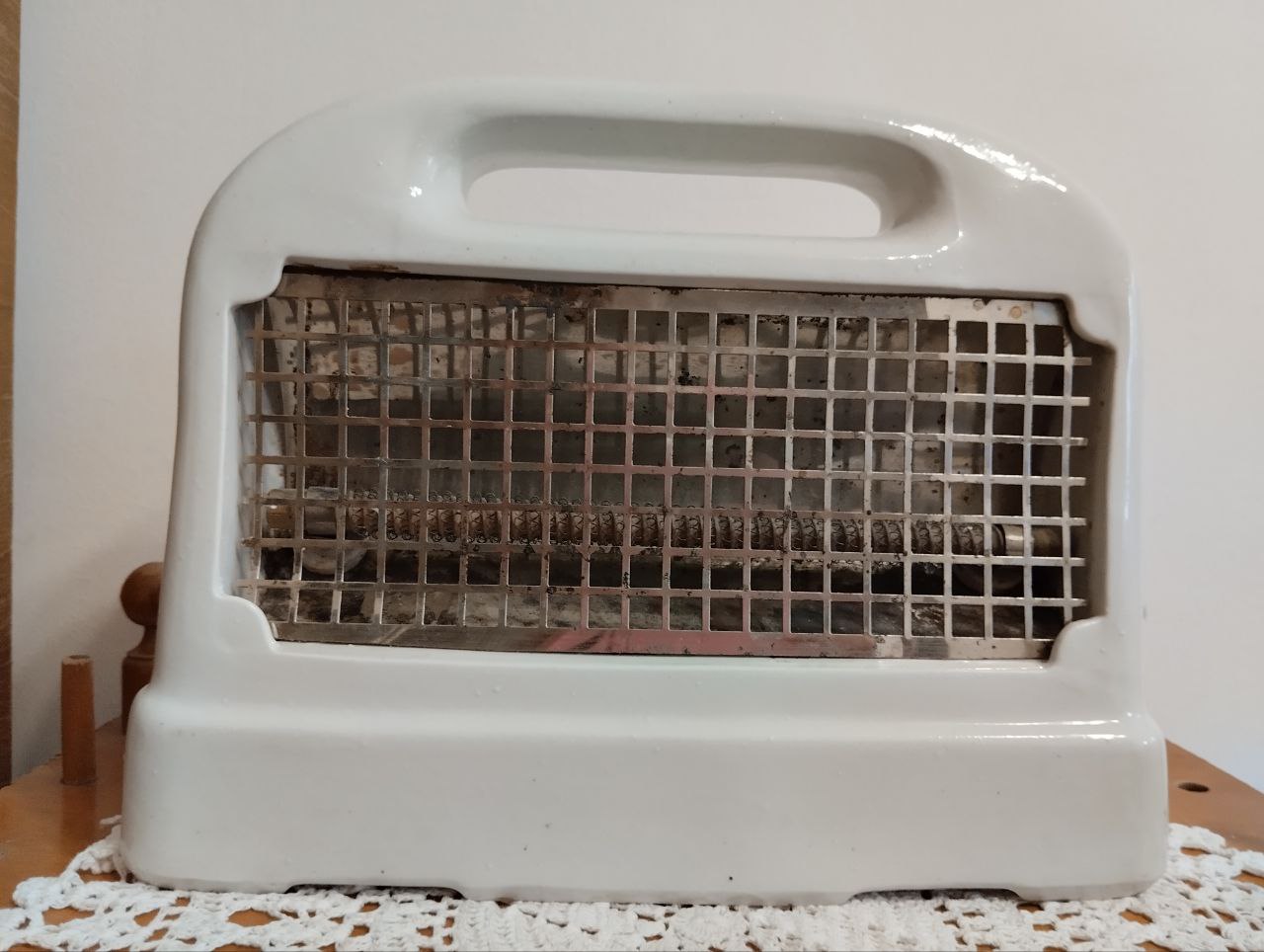 Новый экспонат находится в отличном состоянии для своего возраста. Напряжение 220V. Возможно, кто-то располагает дополнительной информацией о портативном электрообогревателе и сможет поделиться с нами, будем очень благодарны.