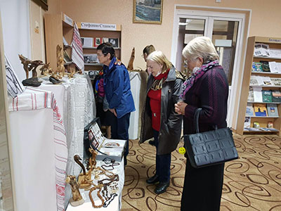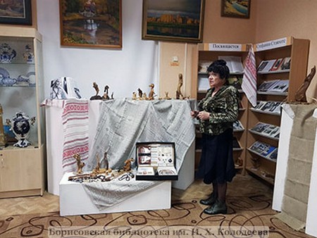 Сотрудник отдела галерейно-выставочной деятельности Антонина Буткевич познакомила гостей с художественной выставкой «Все грани таланта», приуроченной 115-летию народной артистки СССР, примы Национального академического театра им. Янки Купалы Стефании Станюты. Борисовчанки с удивлением узнали, что известная актриса создавала своими руками предметы декоративно-прикладного искусства: деревянную скульптуру малой формы и бижутерию из природных материалов, была активным членом известного минского клуба «Природа и фантазия».