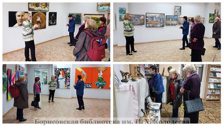 С интересом женщины слушали экскурсию заведующего отделом Татьяны Кирилловой, которая рассказала о выставочном проекте «Борисовский колорит», объединившем в этом году 29 профессиональных и самодеятельных художников нашего города, работающих в самых разных направлениях и жанрах изобразительного искусства.