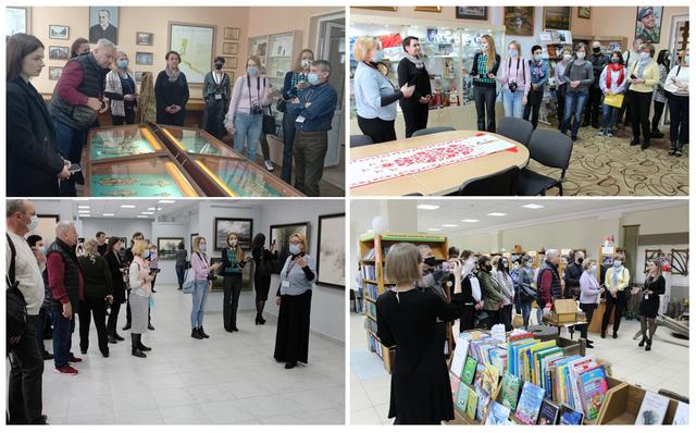 Гостей встретила директор библиотеки Елена Копыток. Рассказав о структурных подразделениях и ресурсном наполнении учреждения, Елена Сергеевна провела для участников встречи небольшую обзорную экскурсию по залам библиотеки, где обратила особое внимание на основные факторы и особенности работы нашей библиотеки, связанные с внутренним и въездным туризмом. Ей помогали сотрудники краеведческого центра (библиотекарь Людмила Тиханович, археограф Александр Балябин), заведующий отделом галерейно-выставочной деятельности Татьяна Кириллова.