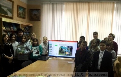 Сотрудник отдела галерейно-выставочной деятельности Антонина Буткевич кратко представила музейную экспозицию, особое внимание уделив взаимодействию городов-партнёров в природоохранной области. Тысячи любителей природы ежегодно посещают Березинский биосферный заповедник (Беларусь, Борисовский район), дендрологический парк «Александрия» (Украина, г. Белая Церковь) и природный заповедник «Рдейский» (Россия, г. Холм). Она познакомила юных гостей библиотеки с данными уникальными природными объектами городов-побратимов Борисовского района. Из беседы ребята узнали много интересных фактов об истории их возникновения, о растительном и животном многообразии этих зон, а также, что ученые и сотрудники заповедников активно сотрудничают, обмениваются информацией, участвуют в международных экологических форумах и семинарах.