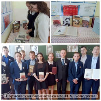 Увазе дзяцей быў прадстаўлены творчы партрэт пісьменіка. Настаўнік беларускай мовы і літаратуры Паляшчук А.А. пазнаёміў прысутных з біяграфіяй В.Быкава. Ваенная тэма ў творах пісьменніка гэта яго боль, яго памяць, яго жыццё. Пра гэтыя творы пісьменніка распавядалі вучні. У канцы мерапрыемства бібіятэкар прачытала верш А.Вярцінскага «Я перад вамі з памяццю сваёй…». Ідэалы праўды і справядлівасці В.Быкаў сцвярджаў кожным сваім новым творам. Чытайце яго творы і пазнавайце жыццё.
