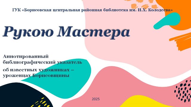 Уважаемые читатели! Отдел информационно-библиографической работы предлагает вашему вниманию аннотированный библиографический указатель «Рукою мастера» об известных художниках – уроженцах Борисовщины.