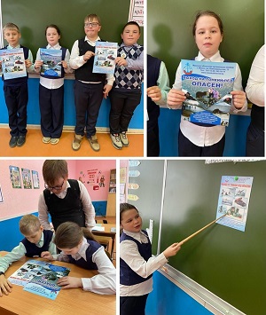 Ребята повторили правила поведения на водоемах в весенний период, отвечали на вопросы библиотекаря; чем весенний отличается лёд от осеннего, что такое ледоход и какие опасности он несет и что предпринять, если попал в беду или оказался свидетелем чрезвычайной ситуации.