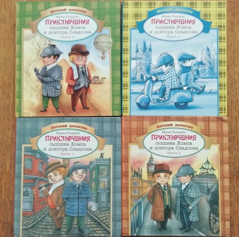 Сельская библиотека-клуб №34 д. Мстиж предлагает юным читателям четыре книги Ирины Токаревой «Приключения сыщика Хомса и доктора Сладсона» издательства «Народная асвета».