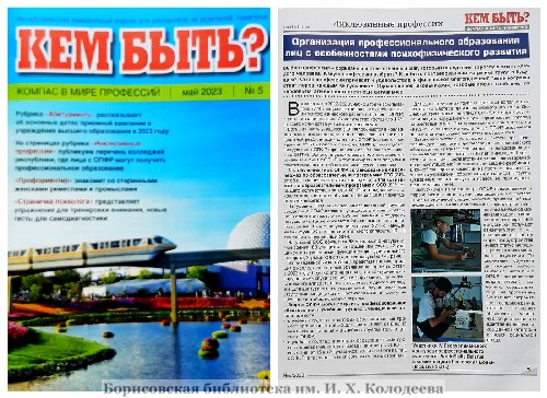 Общий читальный зал предлагает познакомиться со статьей методиста отдела инклюзивного образования РИПО Татьяны Тхорик «Организация профессионального образования лиц с особенностями психофизического развития», опубликованной в журнале «Кем быть?» (№ 5, 2023 г.).