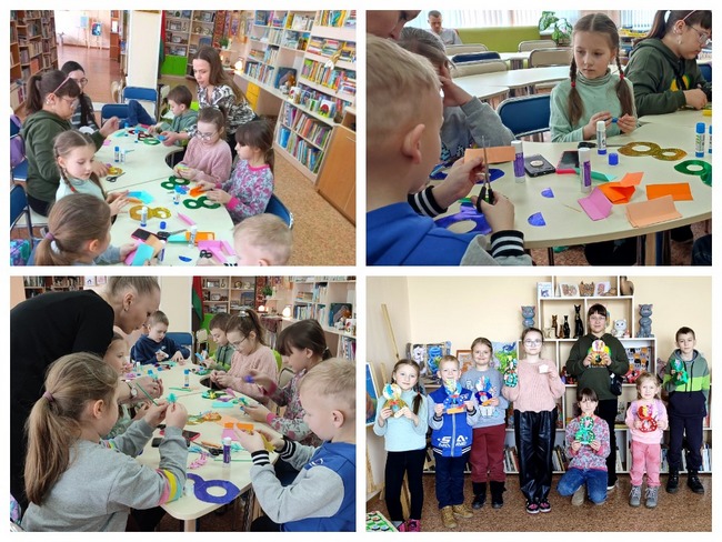 Каждый участник мероприятия поделился рассказом о том, как он поздравил своих бабушку, маму или сестричку. Затем ребята мастерили поделку из голографического картона и цветной бумаги. Заготовку в форме восьмерки они украшали объемными цветами и бантиками. У каждого получилось свое уникальное изделие.