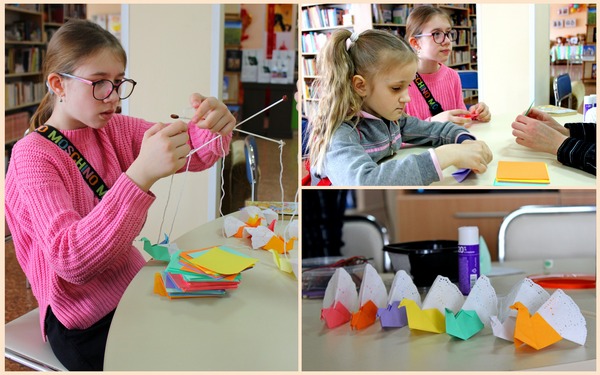7 апреля в зале литературы на иностранных языках прошло очередное занятие по оригами. Из цветной бумаги и ажурных бумажных салфеток у участниц мероприятия получились нарядные яркие птички, которые украсят комнату сами по себе либо собранные в мобиль.