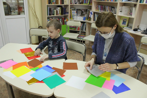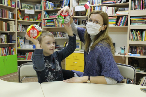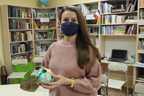 В течение дня все желающие имели возможность попробовать свои силы в создании бумажного шара "кусудама" из цветной бумаги.
