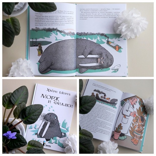 Повесть швейцарского художника и писателя Хайри Штруба «Морж и фиалки» впервые была опубликована в 1951 году, а спустя 60 лет 95-летний автор полностью переработал оформление книги для ее переиздания. Иллюстрации к повести созданы с помощью сочетания различных техник гравюры и прекрасно дополняют текст истории.