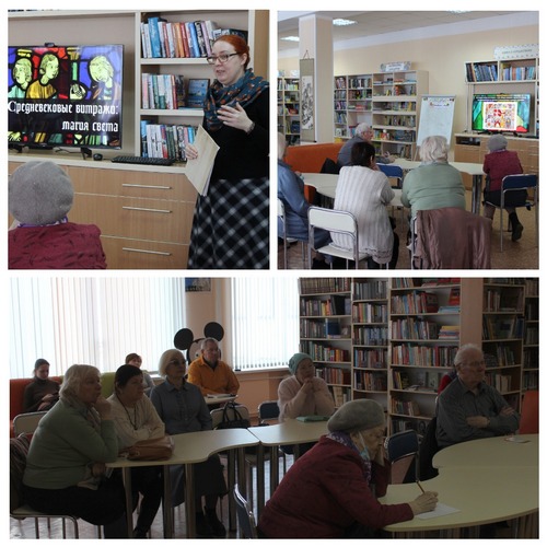 Встреча была посвящена истории возникновения и развития искусства средневекового витража. Участники мероприятия узнали о том, какая роль принадлежала витражам в религиозных обрядах, в каких странах была наиболее развита традиция декорирования культовых зданий витражными композициями, как правильно "читать" и анализировать различные виды витражей.