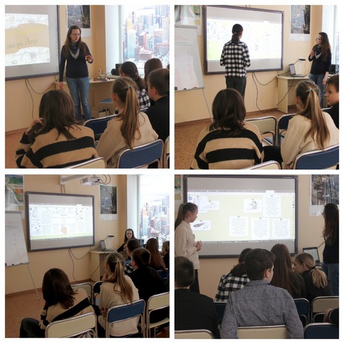Школьники познакомились с биографией Лира, путем его становления как художника и ролью в популяризации такого поэтического жанра, как «лимерик» - забавного пятистишия, герои которого попадают в неожиданные и нелепые ситуации. Затем участники мероприятия при помощи интерактивной доски выполнили задания: искали иллюстрации и варианты перевода к лимерикам, подбирали соответствующие смыслу рифмы.