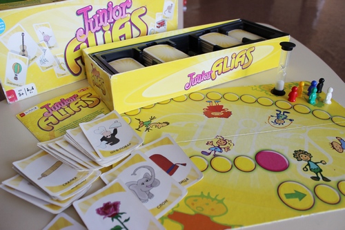 «Alias Junior» – это очень веселая настольная игра для детей, в которой необходимо угадывать слова и изображения. Принимают участие в игре команды, состоящие из двух человек. Минимальное количество игроков – 4 человека, максимальному предела нет. Цель игры для каждой команды – отгадать как можно больше слов из карточек за определенное время, используя при этом объяснения, синонимы, антонимы, намеки, и первой достичь финиша на игровом поле.