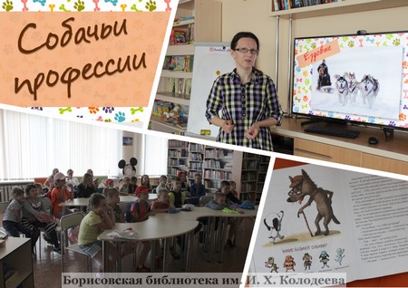 11 июля в зале литературы на иностранных языках для воспитанников пришкольного лагеря ГУО «Средняя школа № 13 г. Борисова» прошло мероприятие под названием «Собачьи профессии», посвященное тому, как справляться с различными задачами человеку помогают его верные друзья – собаки.