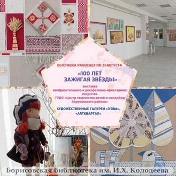 4 июля в Борисовской центральной районной библиотеке им. И.Х. Колодеева состоялось значимое событие: в художественных галереях «З’ява» и «ARTквартал» открылась выставка изобразительного и декоративно-прикладного искусства с позитивным, многообещающим названием «100 лет зажигая звёзды». Звёзды, как вы знаете, зажигают потому, что это кому-нибудь нужно. И в данном случае нужно не только сотрудникам и читателям библиотеки, но и Центру творчества детей и молодёжи Борисовского района, который в текущем году отмечает 100 лет со дня образования.