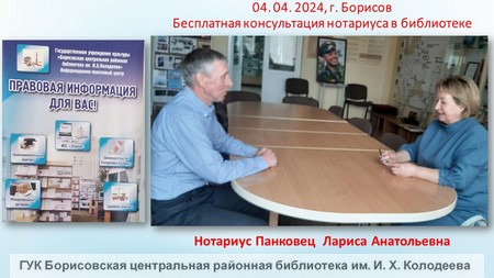 4 апреля для пользователей Борисовской центральной библиотеки нотариус Панковец Лариса Анатольевна провела бесплатную консультацию.