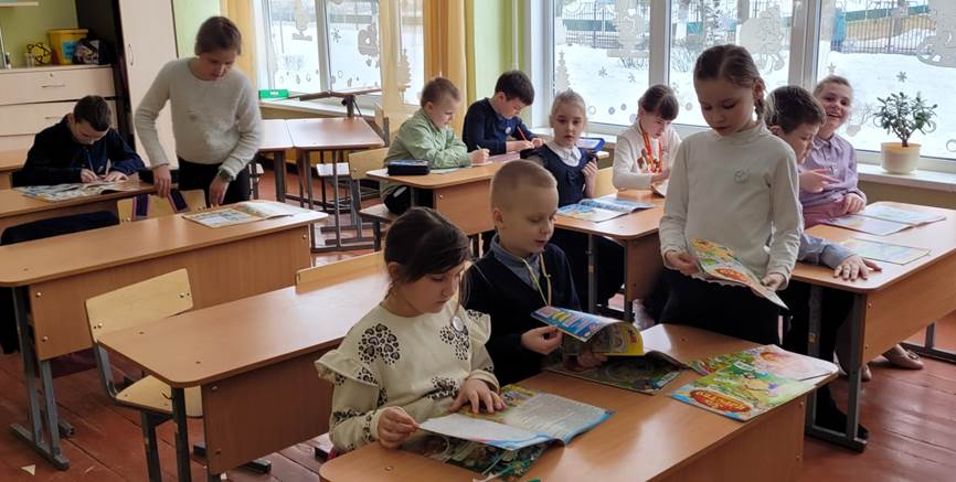 Дети внимательно слушали добрую историю про девочку Катю и её брата Антона, которые весь день собирались приготовить сюрприз для папы. Вечером папа пришёл с работы и сказал «…что с сегодняшнего дня 23 февраля – это наш семейный праздник. Ведь не только я Родину защищаю на заставе, а мама – в поликлинике, но и наши ребята. Вы сегодня и тёте Маше помогали, и щенка хозяйке вернули. Да и про маму не забыли. Это всё и есть – Родину защищать». В завершение встречи ребята самостоятельно читали красочные детские журналы.