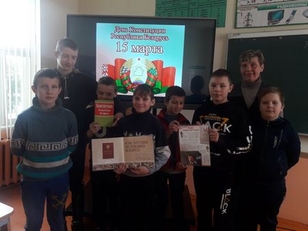 13 марта 2021 года библиотекарь Кищина Слободской сельской библиотеки №24 Светлана Микулович для учащихся ГУО «Кищина Слободской УПК детский сад-средняя школа Борисовского района» ко Дню Конституции Республики Беларусь провела час информации «Закон обо мне и мне о законе».