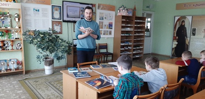 Для учащихся ГУО «Средняя школа №11 г. Борисова» и ГУО «Средняя школа №3 г. Борисова» библиотекарь Олег Жеман провел интерактивную беседу. Ребята поучаствовали в викторине «История книги», затем школьникам были показаны познавательные видеоролики об истории письменности и современного книгопечатания.