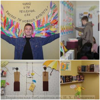 Конечно, такого круговорота юношества, как в «доковидном» 19-м не было, но… возможность камерного живого общения, интересные увлечённые и знающие собеседники (коллекционер-нумизмат Магонь Сергей и юрист, адвокат, член Минской коллегии адвокатов Осмоловская Алиса), любопытные книжные выставки-инсталляции и … фотозона «Крылья» не остались незамеченными. «Крылья», как символ возможностей, которые даёт чтение, притягивали взгляд каждого входящего и руки невольно взлетали вместе с ними, оставляя нам на память удивительные моменты. Выставка «Книги, которые помогут взлететь», в рамках проекта «С финансами на «ты» привлекла внимание не только молодежи, а «Книги, которые помогут не упасть» заинтересовала оформлением, где зонтики и книги - своеобразная «подушка безопасности» для юного человека в сложных жизненных ситуациях. Уникальное (в смысле- единственное) панно, где предлагалось отобразить собственные ассоциации к слову «ЧТЕНИЕ» начиналось сложно, а в результате не хватило стикеров!