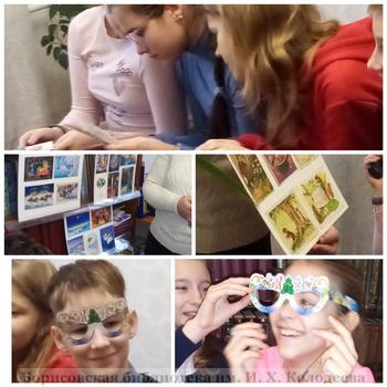 Городская библиотека №4 семейного чтения решила познакомить с некоторыми фактами из истории открытки, новогодней в том числе, учащихся 6 «Г» класса ГУО «Средняя школа №20». Рассказывать об открытках без самих открыток занятие не благодарное, поэтому библиотекарь детского отдела Кумагерчик Елена принесла собственную коллекцию открыток и почтовых карточек, самая ранняя из которых датирована 1954 годом. Обратили внимание шестиклассники на открытки известных художников Владимира Зарубина и Четверякова. Нашлась в коллекции и открытка известной художницы Лидии Маниловой, потерявшей зрение, работая над созданием оригинальных сюжетов для них. Узнали ребята о причинах исчезновения открытки и о её возвращении в разные исторические периоды, о том, как она помогала держать связь с фронтом во время Великой Отечественной войны, как на её сюжетах отразились полёты в космос, Олимпиада-80, о фотооткрытках 80-х г.г. прошлого столетия и о многом другом. Кому интересно подержать в руках историю - приходите к нам!