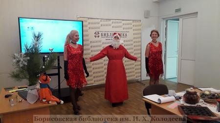 Библиотекари Людмила Ракицкая и Елена Шалайко подготовили развлекательную программу, главными героями которой стали Дед Мороз и Снегурочка. Дамы участвовали в конкурсах, танцевали, веселились. В ходе мероприятия звучали добрые слова поздравлений с наступающим Новым годом.